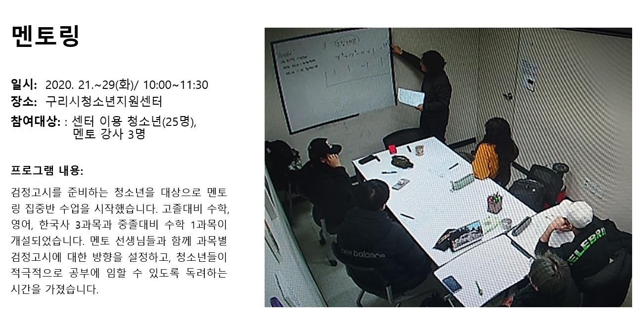 청소년상담복지센터 2020년 1월 멘토링 작성자 관리자 등록일자 2020년 2월 4일 13시 32분 45초 조회 267 1580790765_photo_table.png [ Size : 1MB , Down : 117 ] 미리보기 다운로드 목록보기