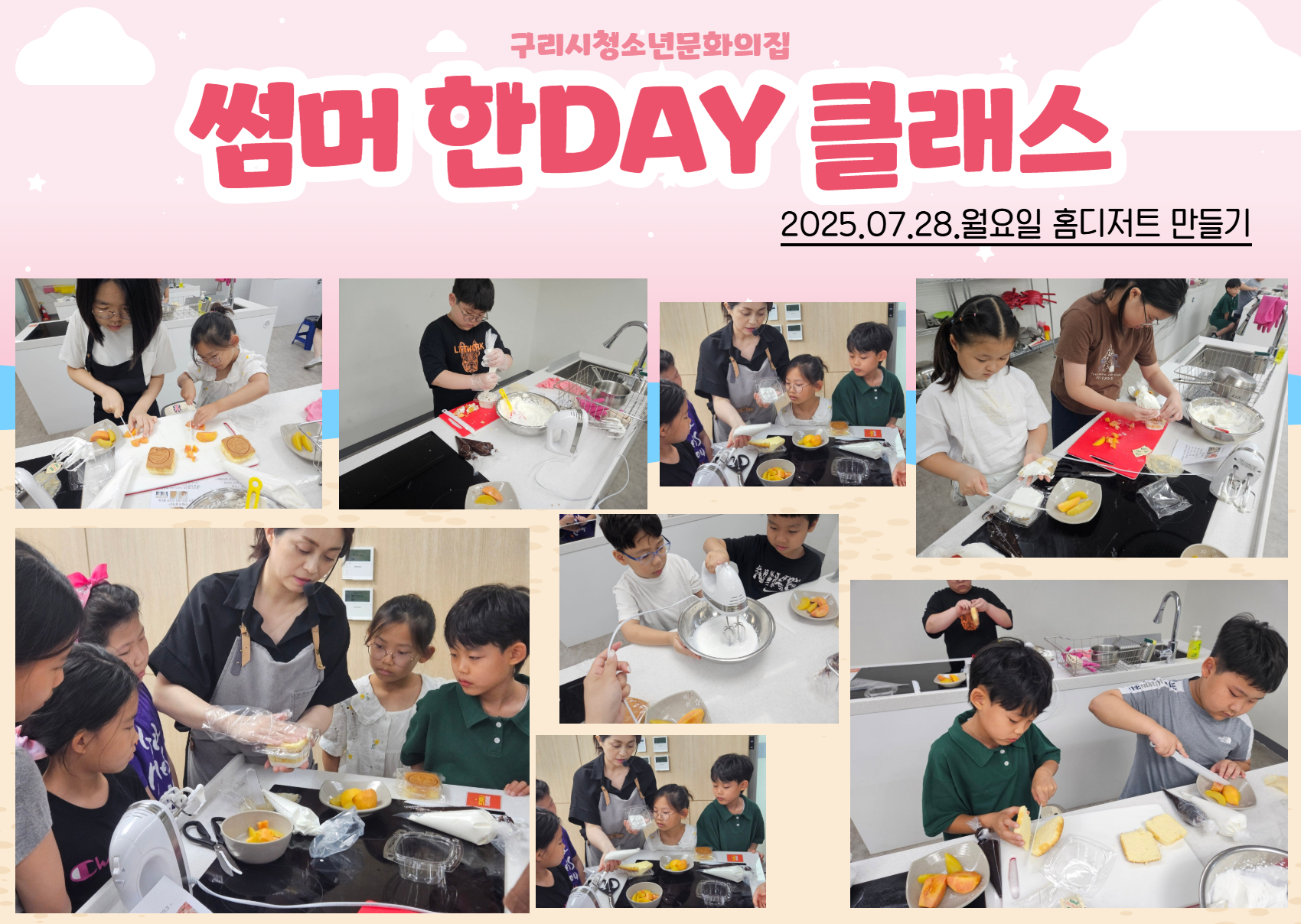 청소년문화의집 썸머 한DAY 클래스(홈디저트 만들기)_25.07.28 작성자 김윤지 등록일자 2025년 8월 5일 11시 15분 1초 조회 62 활동기록 (1).jpg [ Size : 1.53MB , Down : 30 ] 미리보기 다운로드 활동기록 (2).jpg [ Size : 1.53MB , Down : 31 ] 미리보기 다운로드 목록보기