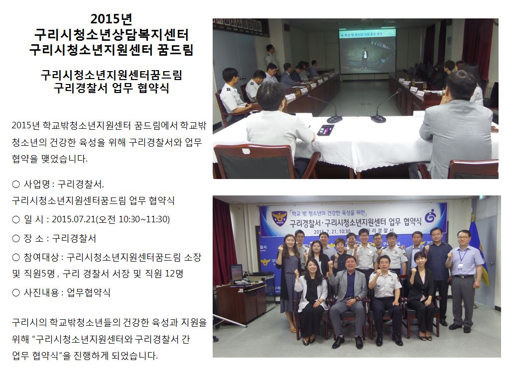 청소년상담복지센터 [꿈드림]2015년 구리경찰서 업무협약식 작성자 관리자 등록일자 2015년 9월 3일 11시 34분 13초 조회 534 1441247653_photo_table.jpg [ Size : 142.58KB , Down : 106 ] 미리보기 다운로드 목록보기