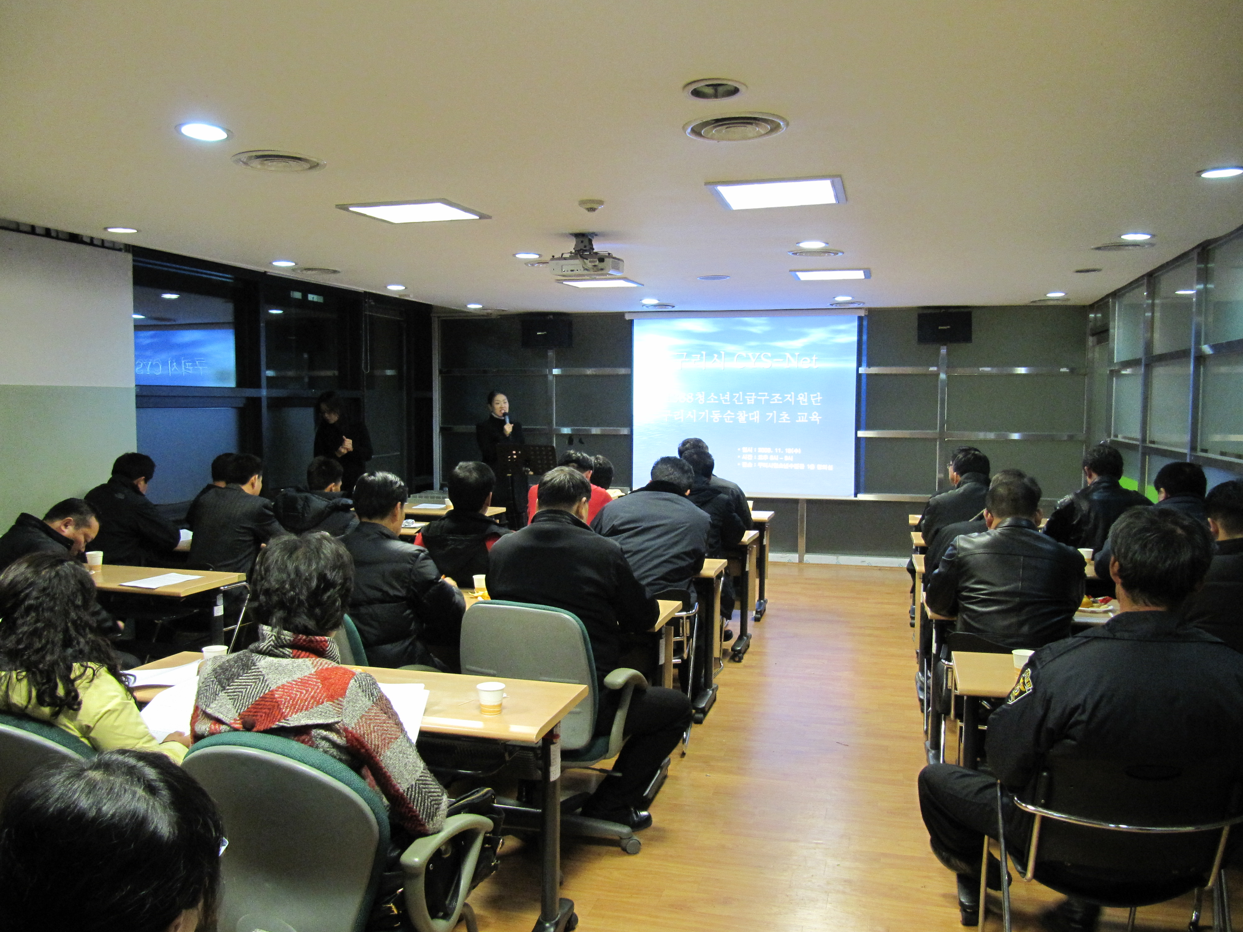 청소년상담복지센터 1388구조지원단 교육 작성자 관리자 등록일자 2010년 1월 22일 14시 45분 1초 조회 709 1388긴급구조지원단인 구리시기동순찰대 기본교육을 진행하였습니다. 구리시의 청소년들을 위해 많은 도움을 주시고 계십니다. 교육에 뜨거운 관심을 보여주셨습니다. 많은 관심과 도움을 주고 계시는 기동순찰대 여러분, 감사합니다~ 1264139101_photo_table.jpg [ Size : 2.76MB , Down : 142 ] 미리보기 다운로드 목록보기