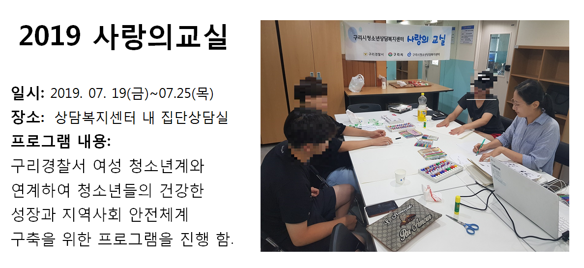 청소년상담복지센터 2019 7월 사랑의교실 작성자 관리자 등록일자 2019년 8월 5일 14시 1분 48초 조회 307 1564981308_photo_table.png [ Size : 623.78KB , Down : 113 ] 미리보기 다운로드 목록보기