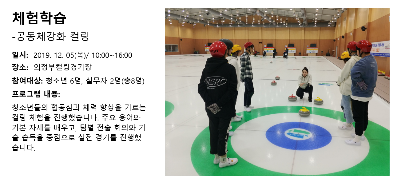 청소년상담복지센터 2019년 12월 체험학습 - 공동체강화 컬링 작성자 관리자 등록일자 2020년 1월 6일 14시 31분 38초 조회 345 1578288698_photo_table.png [ Size : 781.14KB , Down : 116 ] 미리보기 다운로드 목록보기