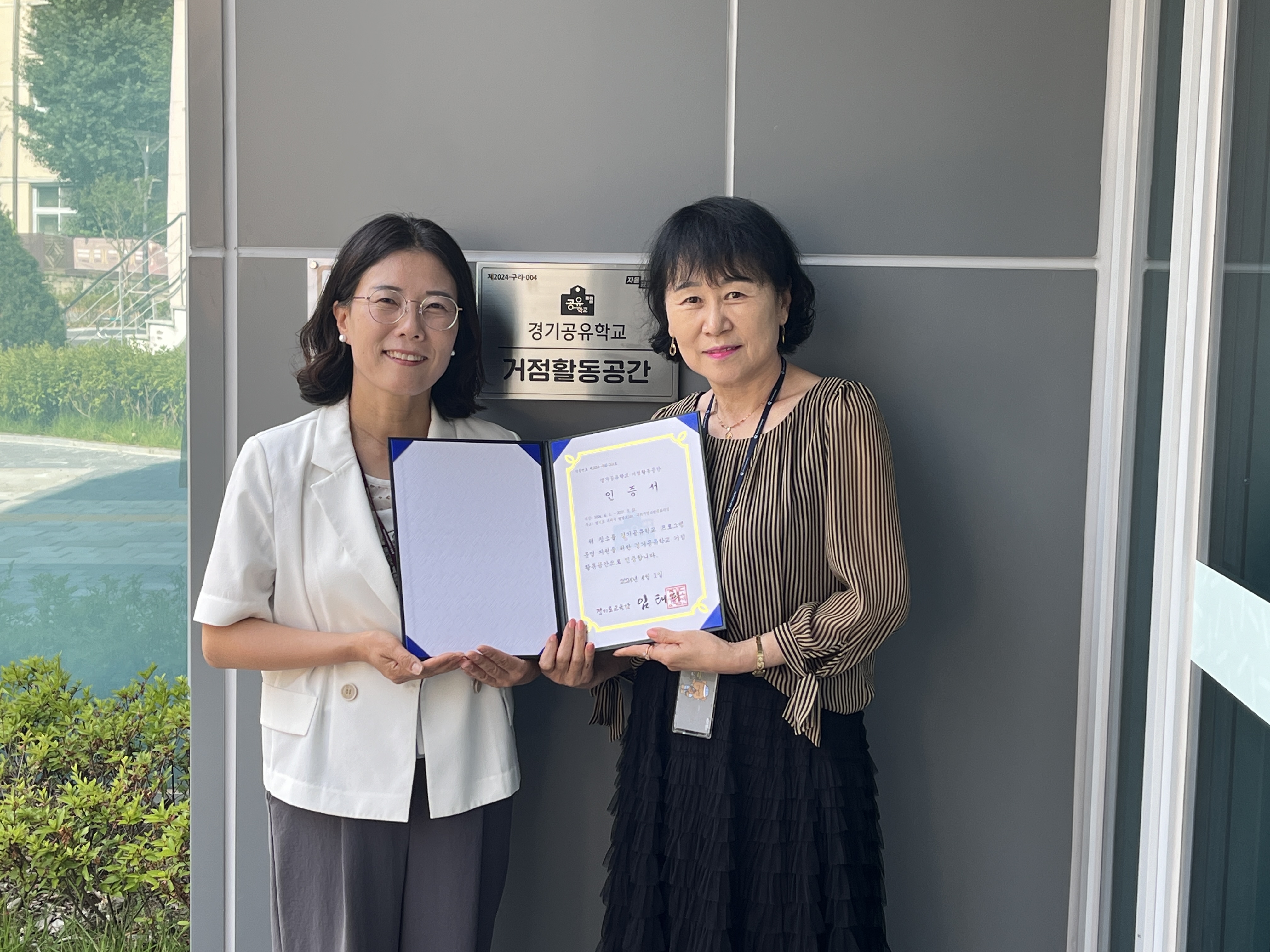 청소년문화의집 경기공유학교 거점활동공간 인증 작성자 유병흔 등록일자 2024년 6월 24일 12시 54분 22초 조회 357 구리남양주교육지원청(구리시교육지원센터)와 구리시청소년문화의집 간에경기공유학교 운영의 활성화를 위한 거점활동공간 인증을 진행하였습니다.구리시청소년문화의집 입구에 거점활동공간 현판부착 및 인증서 전달을 진행하였습니다.앞으로도 양 기관은 구리시 청소년들에게 양질의 교육 및 활동환경을 마련하고자 노력하겠습니다. P20240619_162329612_F731A153-9B2F-4918-9D05-012D92047D05.JPG [ Size : 2.03MB , Down : 113 ] 미리보기 다운로드 목록보기