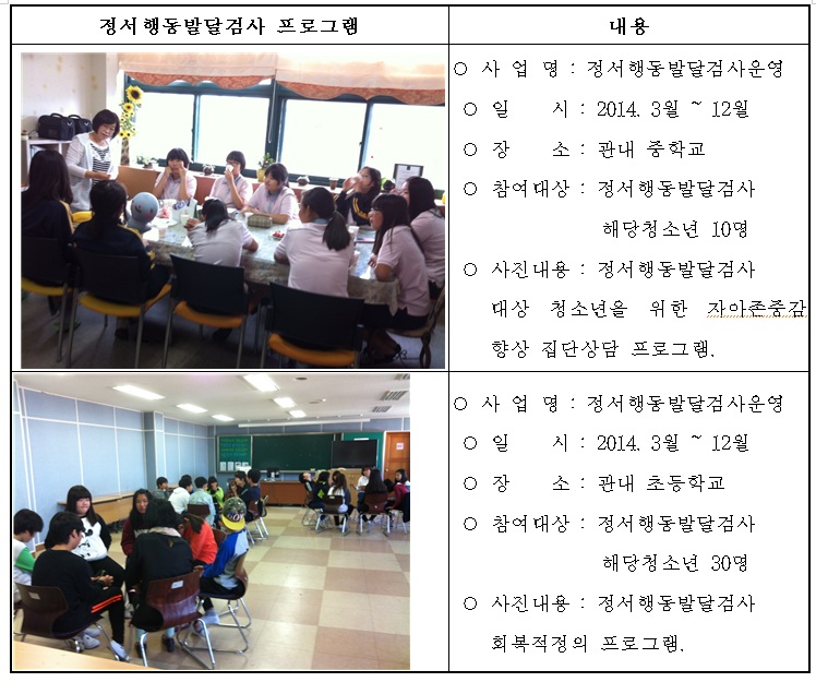청소년상담복지센터 2014년 정서행동발달검사 작성자 관리자 등록일자 2014년 12월 31일 10시 58분 32초 조회 610 1419991112_photo_table.jpg [ Size : 158.26KB , Down : 118 ] 미리보기 다운로드 목록보기