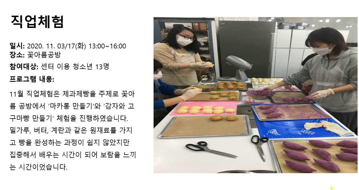 청소년상담복지센터 2020년 11월 직업체험 작성자 관리자 등록일자 2020년 12월 4일 11시 12분 4초 조회 375 1607047924_photo_table.png [ Size : 968.03KB , Down : 133 ] 미리보기 다운로드 목록보기