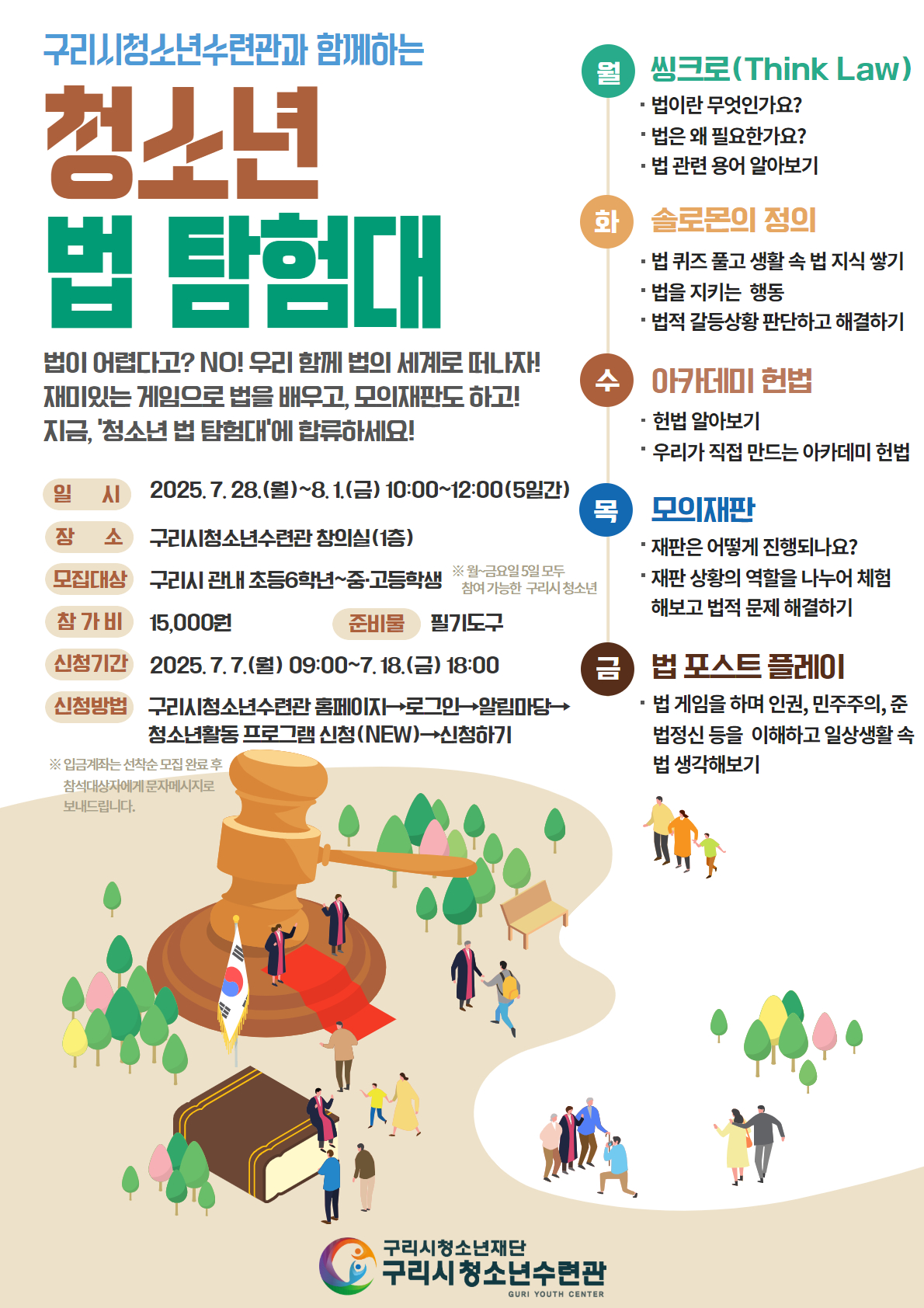 청소년수련관 법의 세계로 떠나는 5일간의 여름 탐험 "청소년 법 탐험대" 참가자 모집!!!