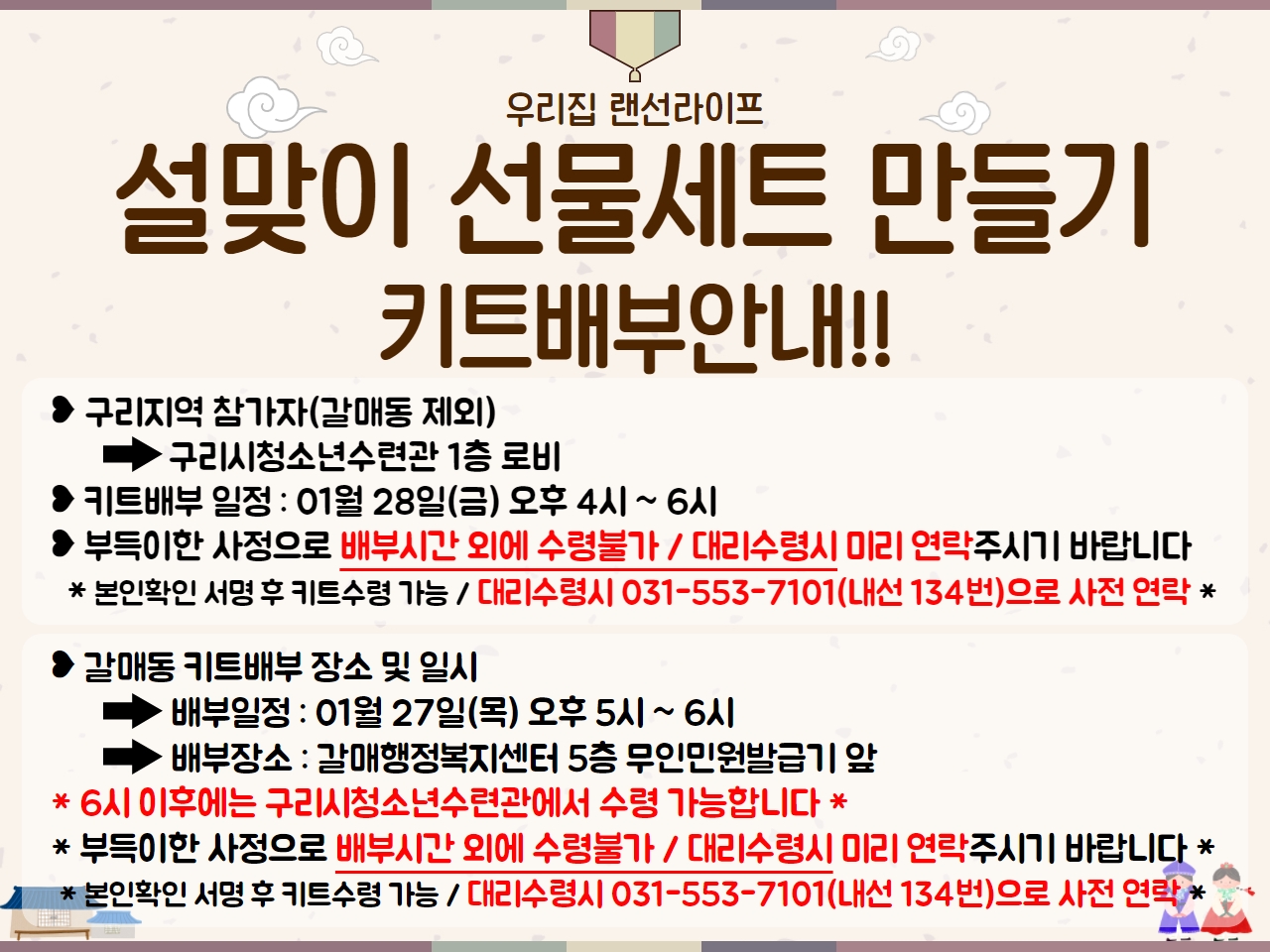 청소년수련관 < 우리집 랜선라이프-설맞이 선물세트 만들기 > 키트 배부 안내!
