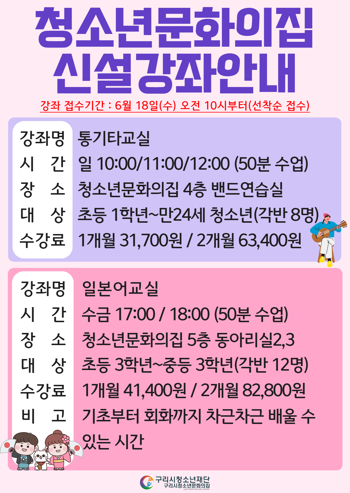 청소년문화의집 [공지]청소년문화의집 일본어, 통기타 강좌 운영!