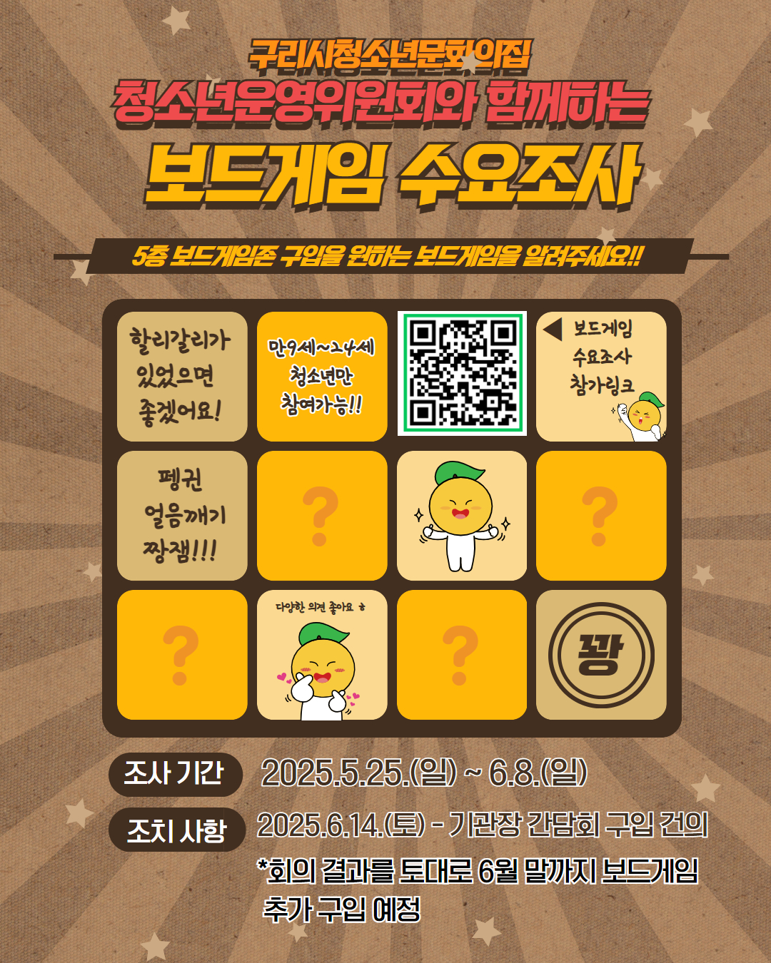 청소년문화의집 [구리시청소년문화의집] 청소년운영위원회와 함께하는 청소년 보드게임 수요조사!!