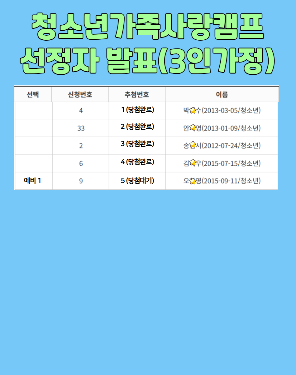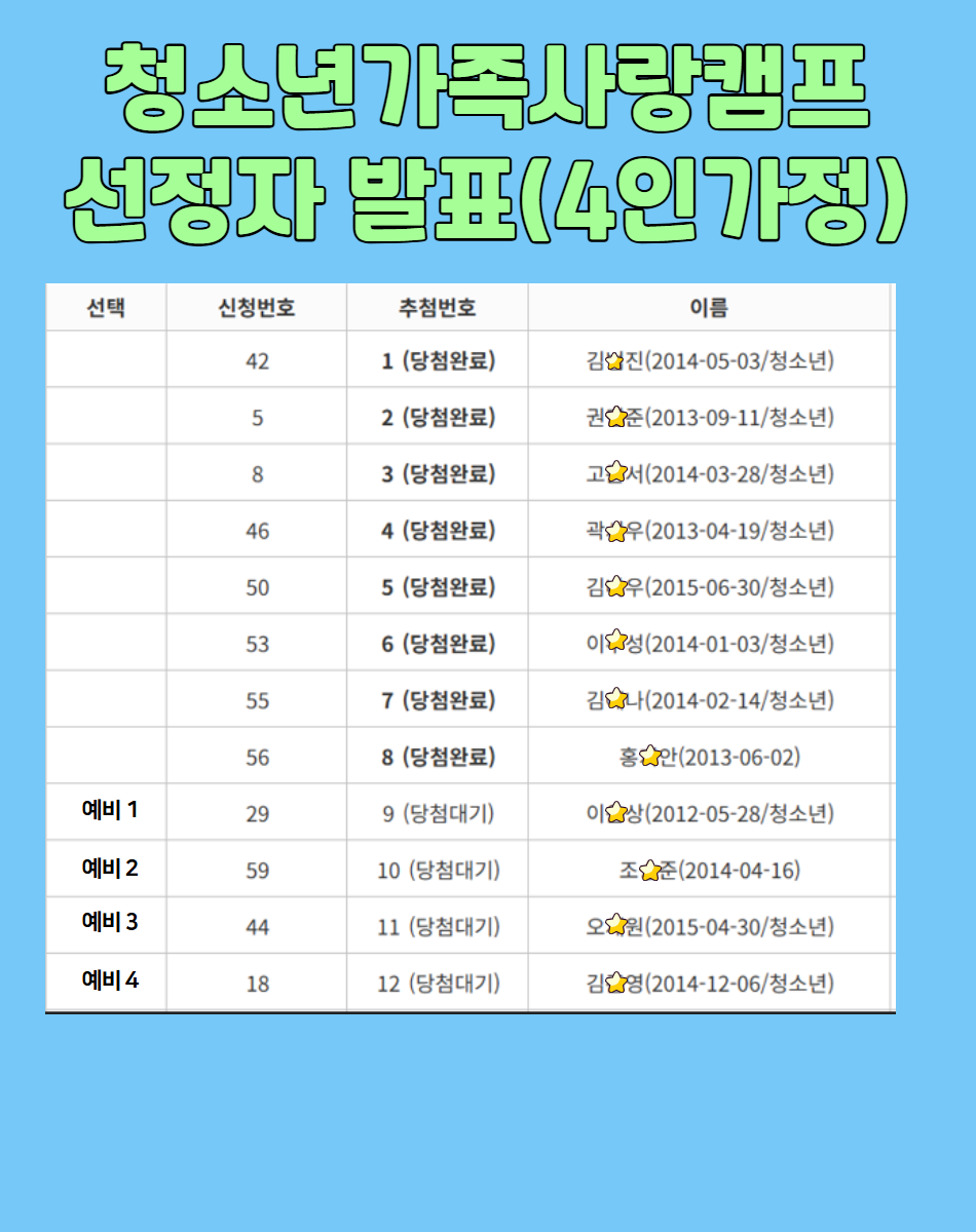 2025년 구리시 청소년 가족사랑캠프 신청해주신 분들게 감사드립니다.