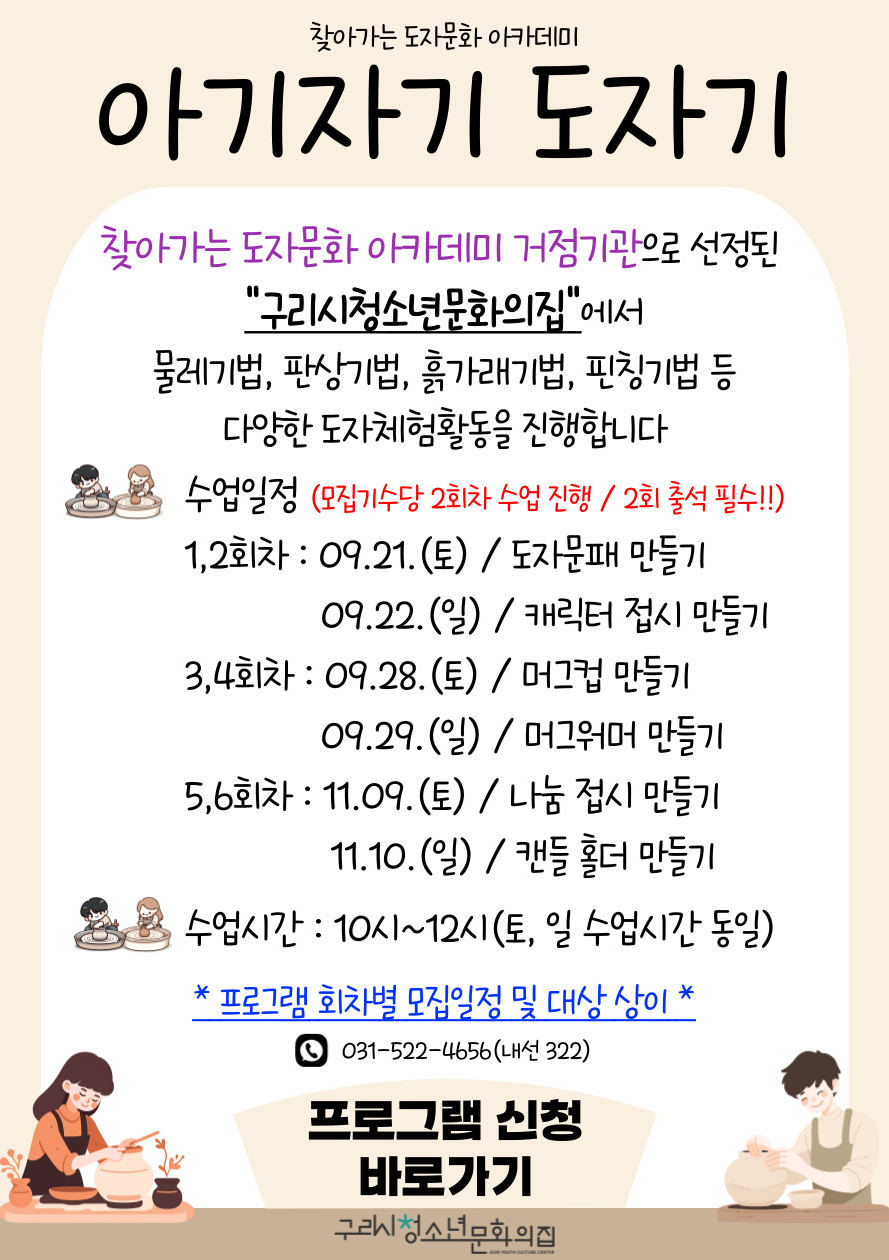 청소년문화의집 구리시청소년문화의집 도자 체험 프로그램 "아기자기 도자기" 운영