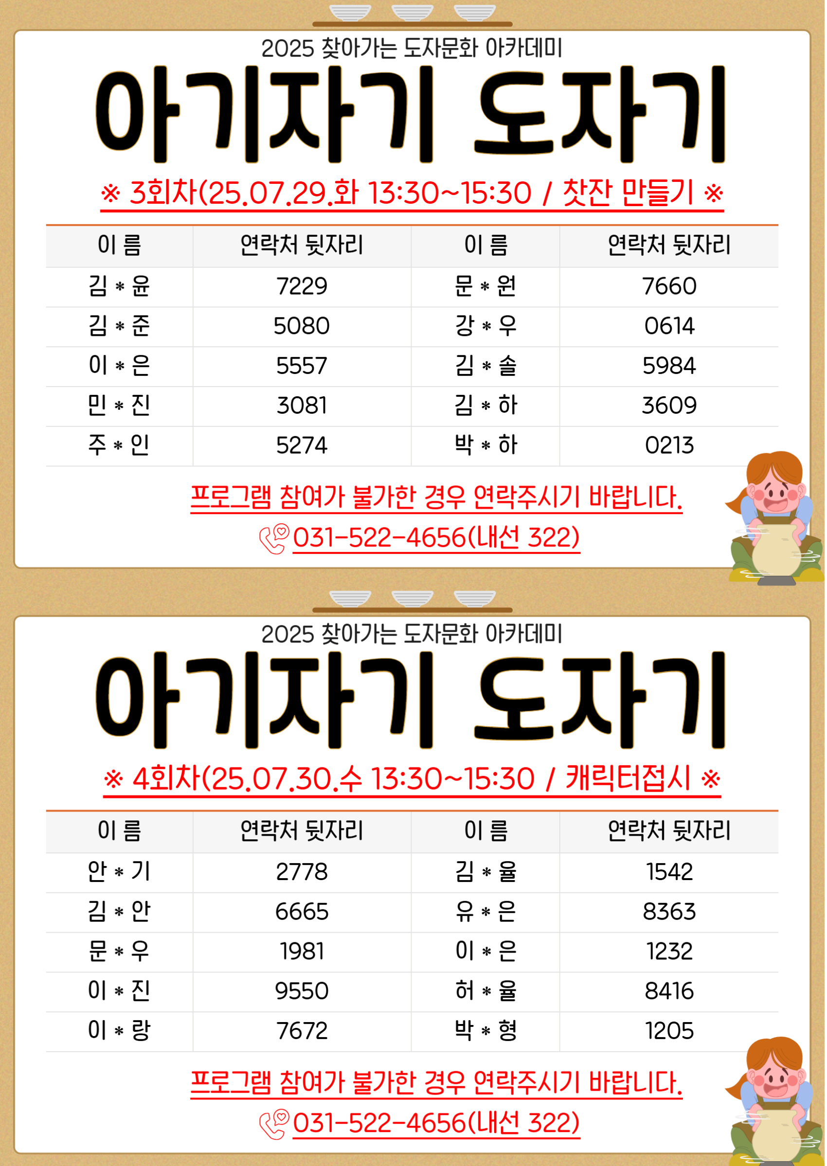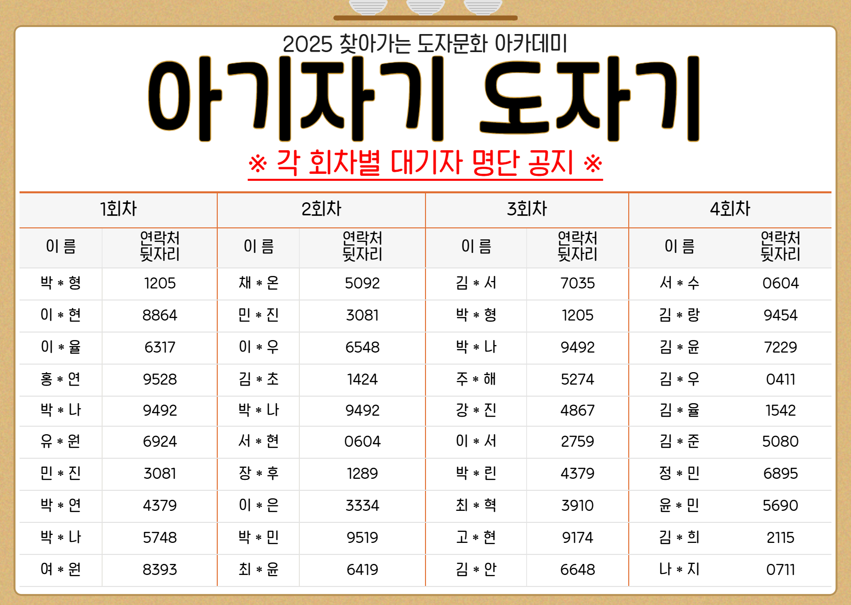 청소년문화의집 〔공지〕2025 아기자기 도자기 1~4회차 참가자 모집 추첨 결과 및 대기자 명단