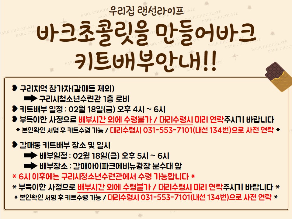 청소년수련관 < 우리집 랜선라이프-바크초콜릿을 만들어바크 > 키트 배부 안내!