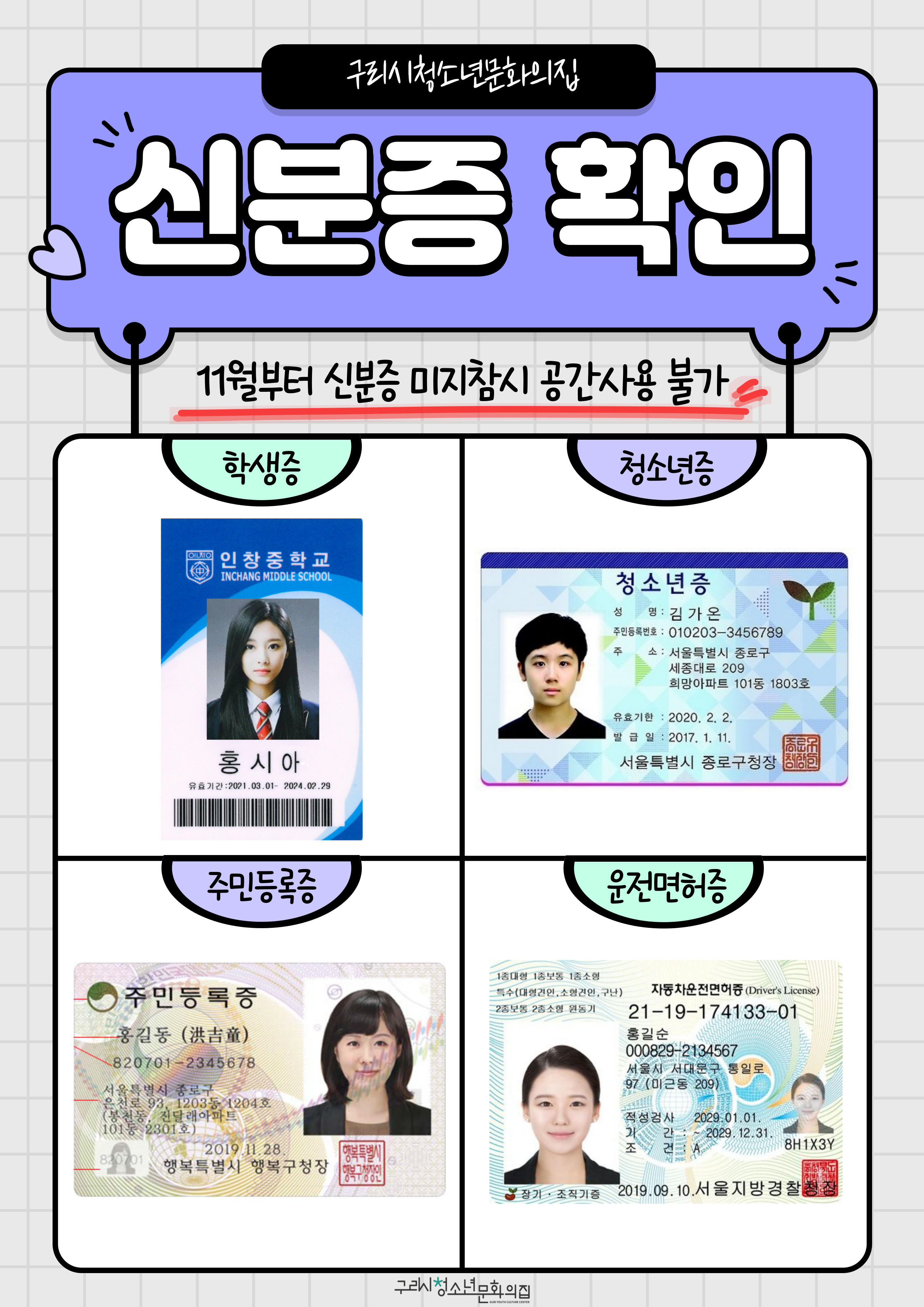 (학생증, 청소년증, 주민등록증, 면허증 등 /
