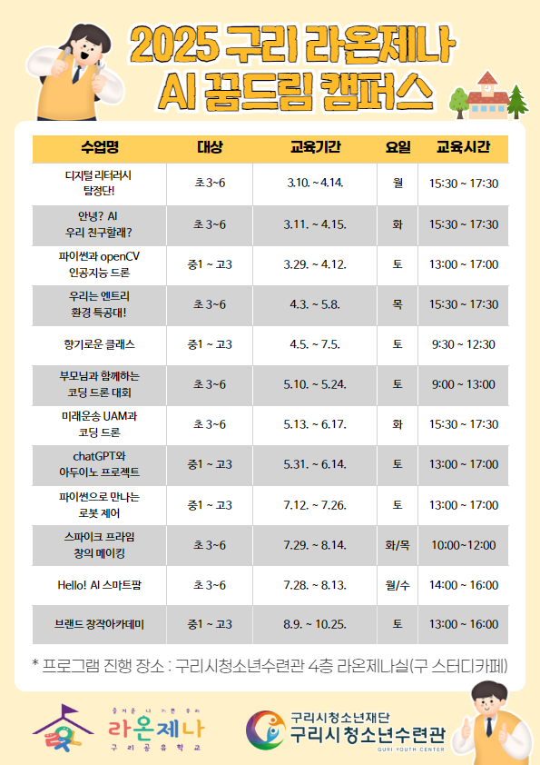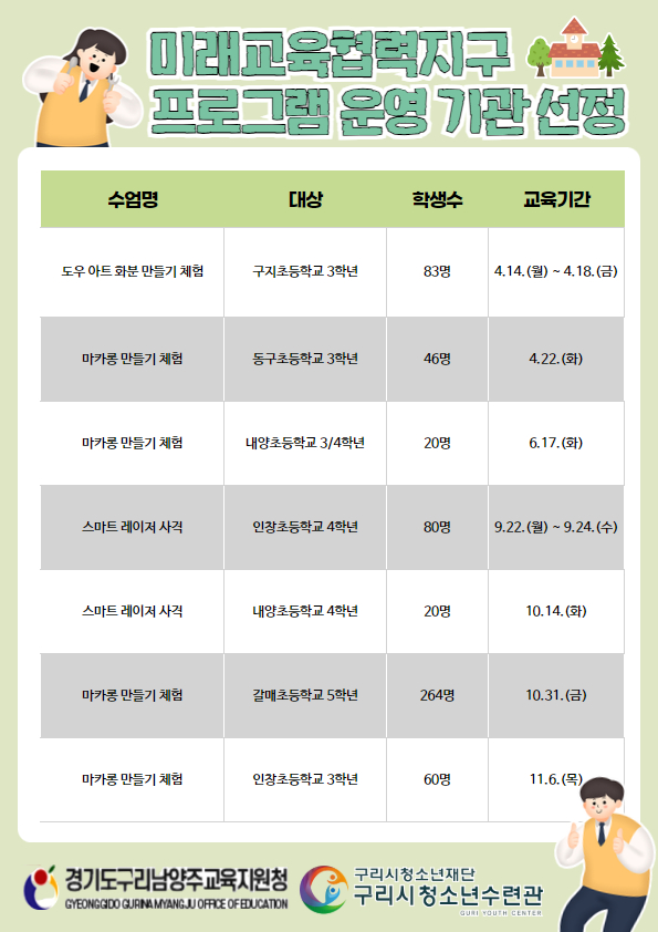 청소년수련관 2025 구리남양주교육지원청 프로그램 운영 기관 선정 안내