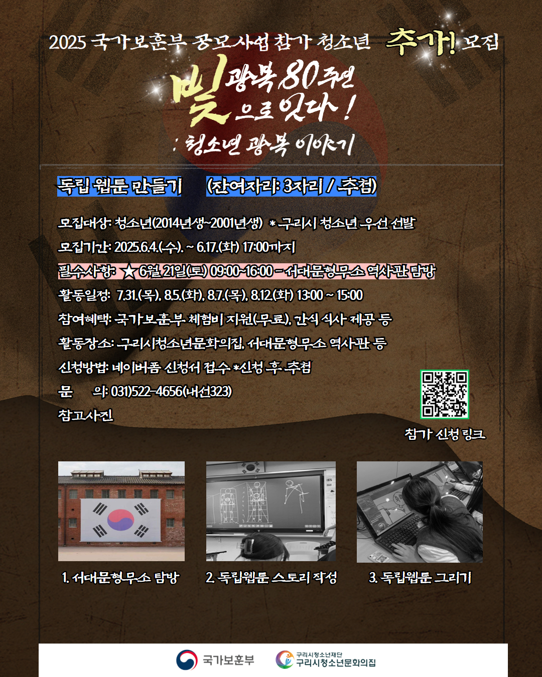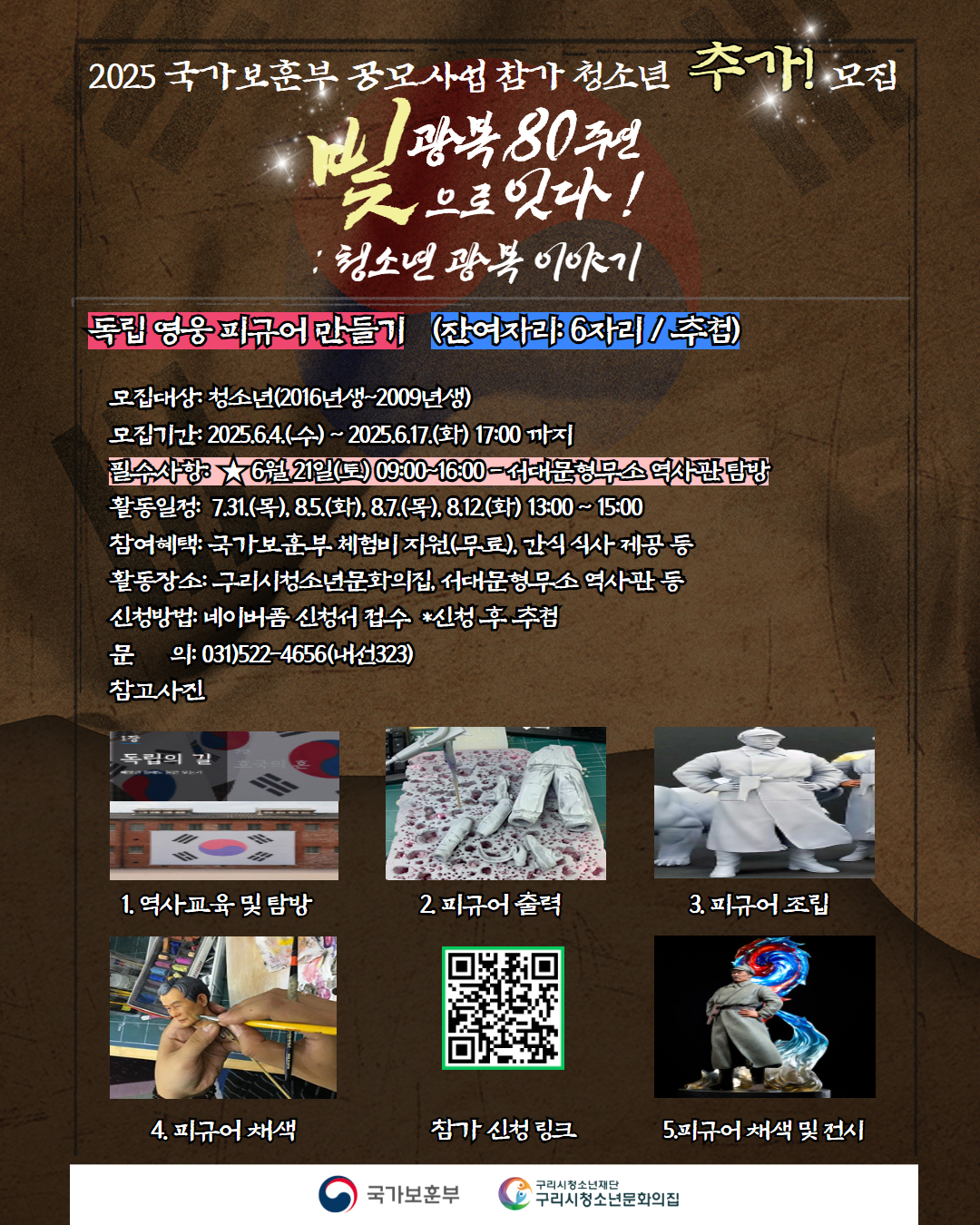 청소년문화의집 [추가모집] 국가보훈부 공모 '보훈 체험활동' 참가자 모집!! (독립영웅 피규어 만들기, 웹툰 만들기)