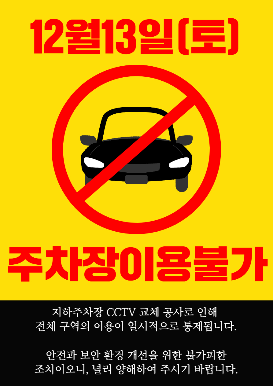 [2025년 12월 13일(토) 주차장 이용 불가 안내]