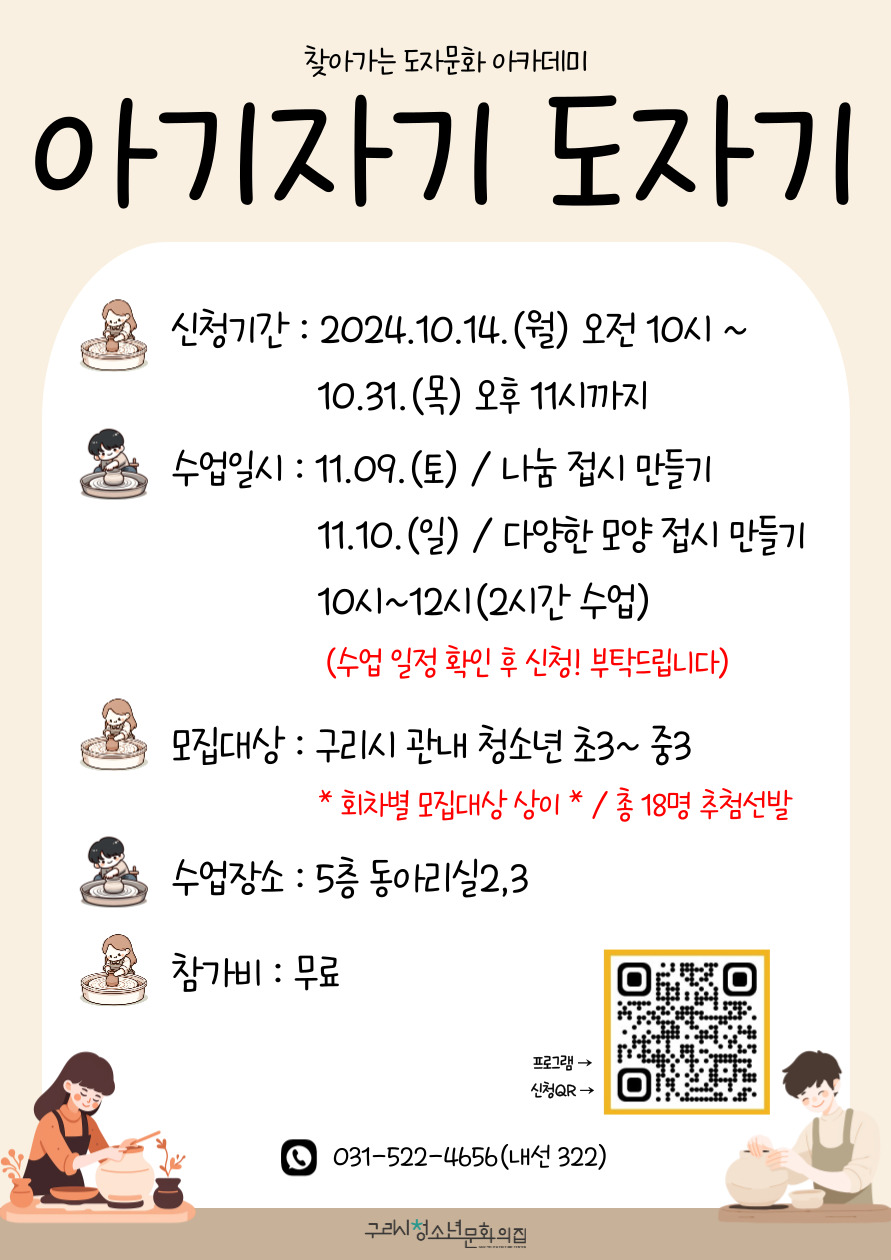 청소년문화의집 도자 체험 프로그램 '아기자기 도자기' 참가 모집 및 세부 내용 안내