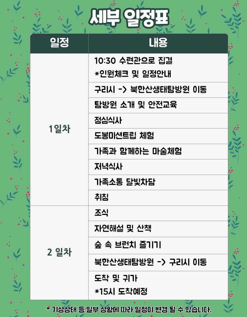 ● 운영장소 : 구리시청소년수련관, 북한산생태탐방원