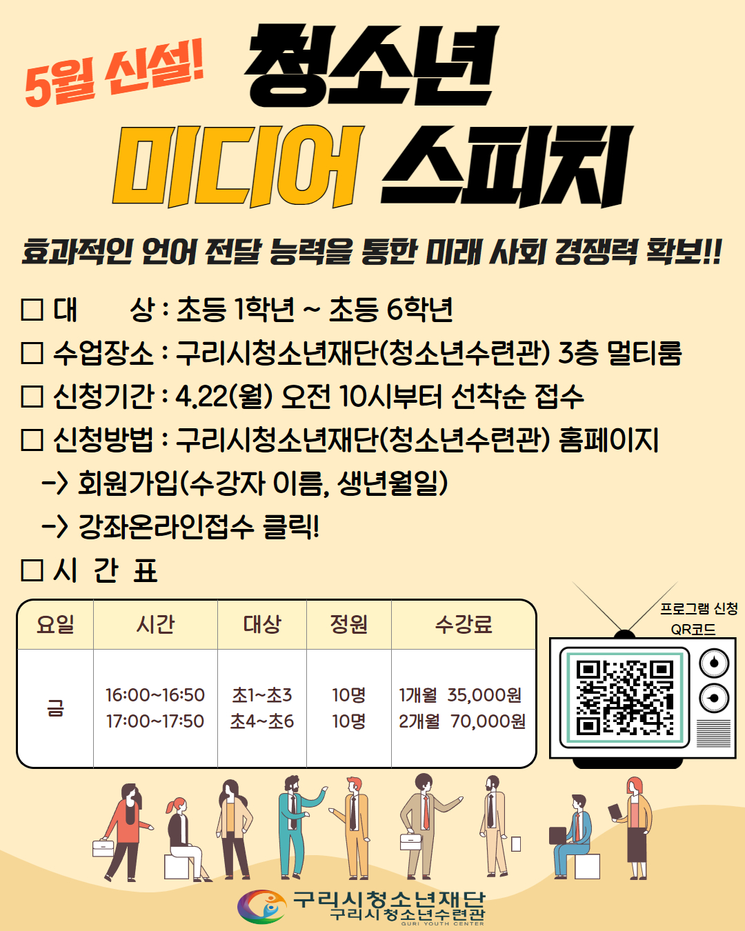 5월부터 신설강좌로 '청소년 미디어 스피치'가 운영됩니다!!!