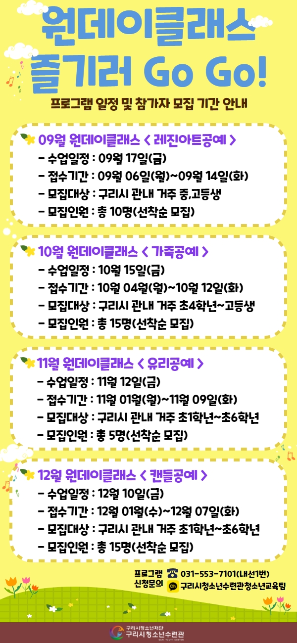 청소년수련관 구리시청소년수련관 < 원데이클래스 즐기러GoGo! - 나만의 아이템 만들기 > 접수 일정 공지