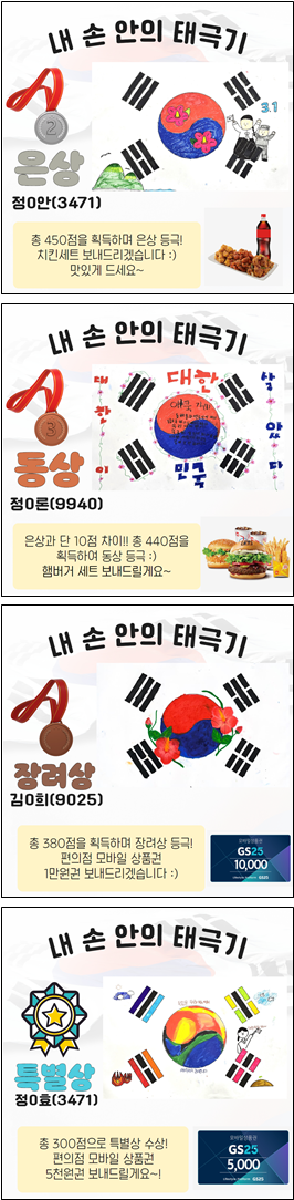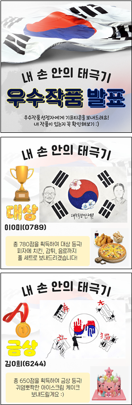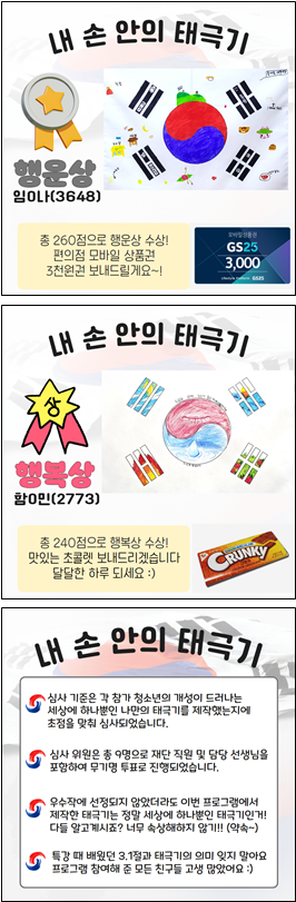 청소년수련관 [인증프로그램] 2025 '내 손 안의 태극기' 우수 작품 발표 작성자 김재희 등록일자 2025년 2월 26일 10시 9분 8초 조회 289 1.png [ Size : 256.04KB , Down : 276 ] 미리보기 다운로드 2.png [ Size : 309.3KB , Down : 279 ] 미리보기 다운로드 3.png [ Size : 234.07KB , Down : 276 ] 미리보기 다운로드 목록보기