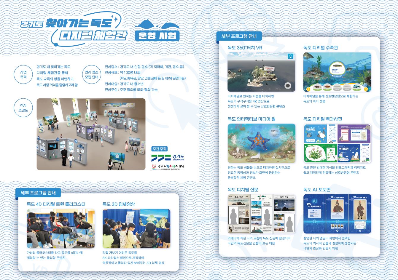 청소년수련관 찾아가는 청소년 독도 디지털체험관 운영 안내 작성자 김재희 등록일자 2024년 9월 10일 15시 32분 41초 조회 323 안녕하세요! 구리시청소년수련관입니다 :) 현재 구리시청소년수련관 1층 로비에 독도가 찾아왔다는 소식입니다어떻게 독도가 찾아왔냐구요? 디지털로!! 0_<다양한 디지털 장비로 쉽게 갈 수 없는 독도를 10초만에 갈 수 있는 기회!디지털 전시관은 9월 13일(금) 까지 운영되니많이많이 찾아와주세요 :D 독도.JPG [ Size : 298.4KB , Down : 222 ] 미리보기 다운로드 목록보기