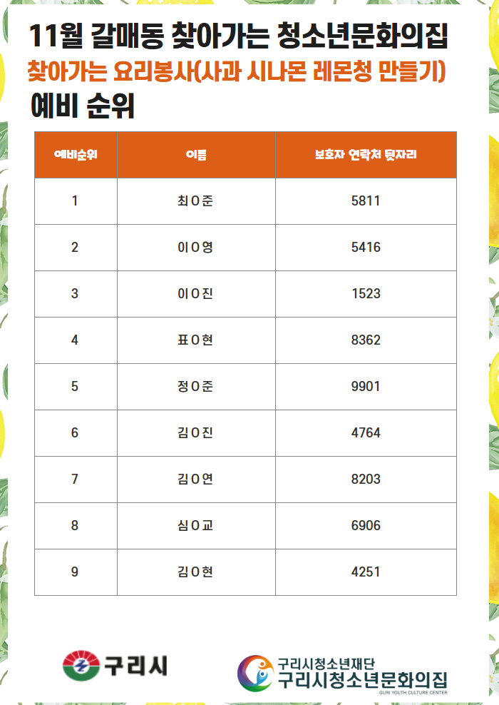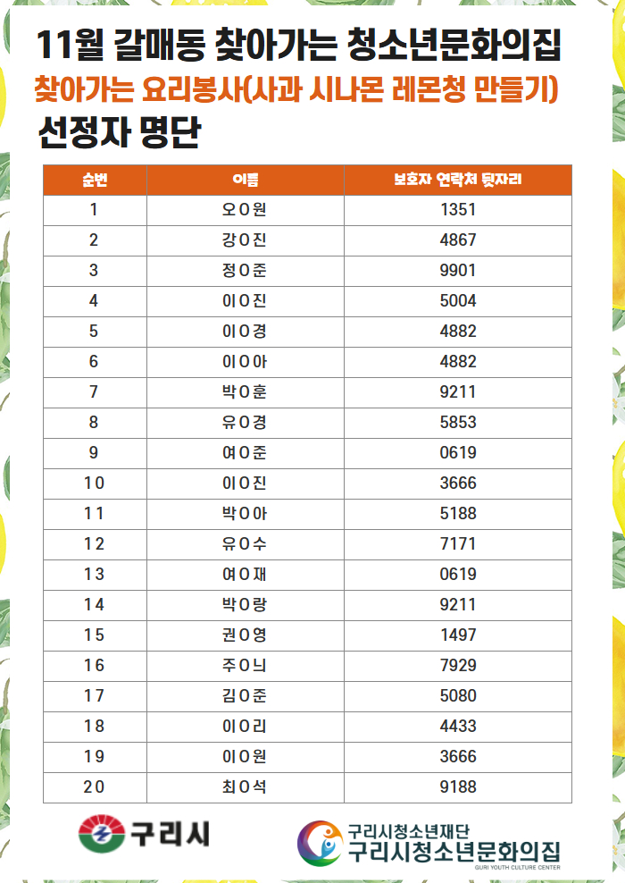 청소년문화의집 갈매동 11월 찾아가는 요리봉사 선정자 및 예비인원 안내 작성자 이호암 등록일자 2025년 11월 12일 10시 19분 49초 조회 53 [복사본] [복사본] 제목을 입력하세요 1.jpg [ Size : 388.37KB , Down : 50 ] 미리보기 다운로드 [복사본] [복사본] 제목을 입력하세요 2.jpg [ Size : 299.42KB , Down : 52 ] 미리보기 다운로드 목록보기