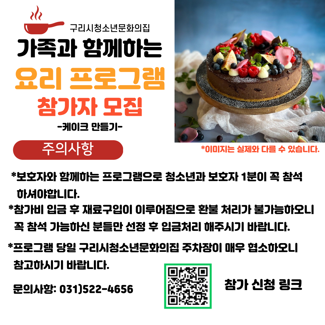 청소년문화의집 ★모집완료★ 가족과 함께하는 요리 프로그램 참가자 모집