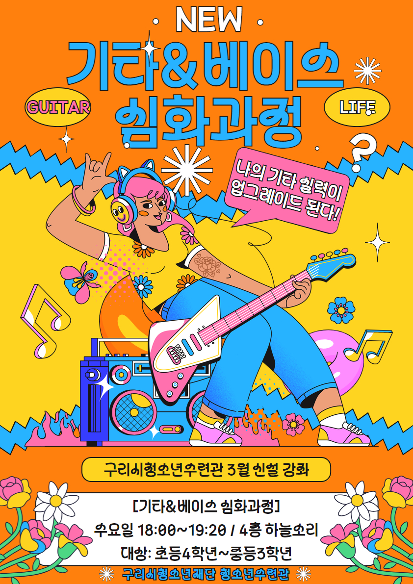 청소년수련관 1인1악기 신설강좌 [기타&베이스 심화과정] 안내