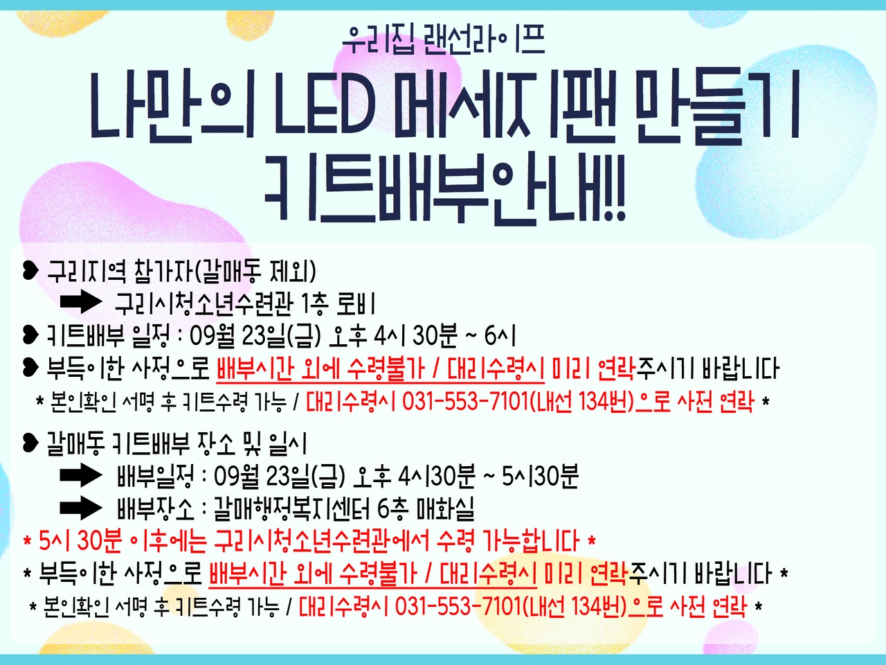 청소년수련관 우리집 랜선라이프 - 나만의 LED 메세지팬 만들기 키트 배부 안내!