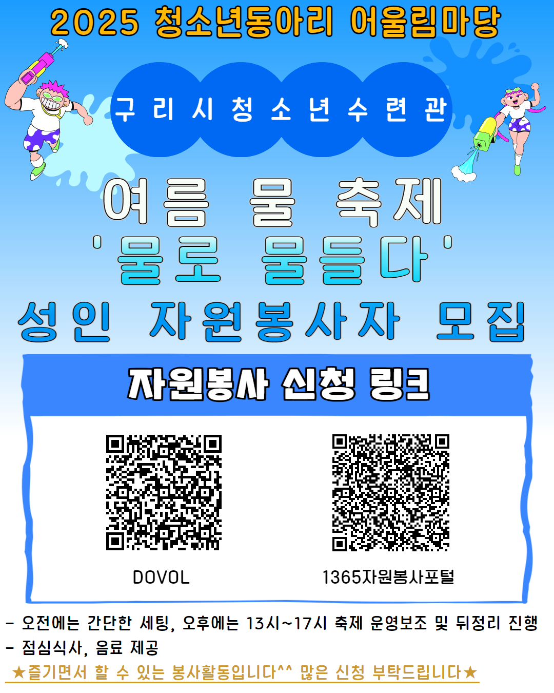 청소년수련관 2025 청소년동아리 어울림마당(여름 물 축제-물로 물들다) 성인 자원봉사자 모집 안내