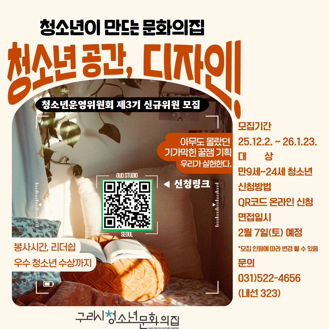 공지 청소년문화의집 [모집]스펙 UP! 특별한 경험 Plus 2026년 제3기 청소년운영위원회 신규 위원 모집!