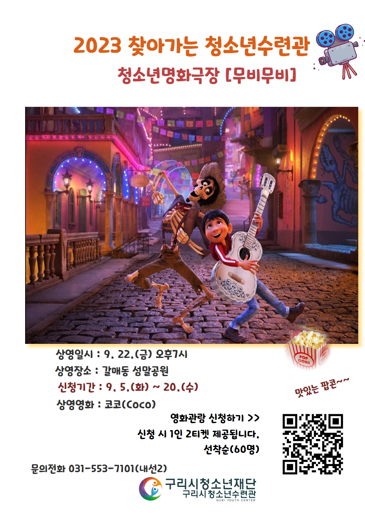 청소년수련관 2023 갈매동 찾아가는청소년수련관 - 청소년명화극장Ⅱ 작성자 진현미 등록일자 2023년 9월 7일 14시 3분 31초 조회 403 [ 2023 갈매동 찾아가는청소년수련관 - 청소년명화극장Ⅱ ]@공연일정 : 9월 22일(금) 오후7시~@공연장소 : 갈매동 섬말공원@신청기간 : 9/5(화)~9/20(수) 사전접수 2023 무비무비9월.jpg [ Size : 948.83KB , Down : 261 ] 미리보기 다운로드 목록보기