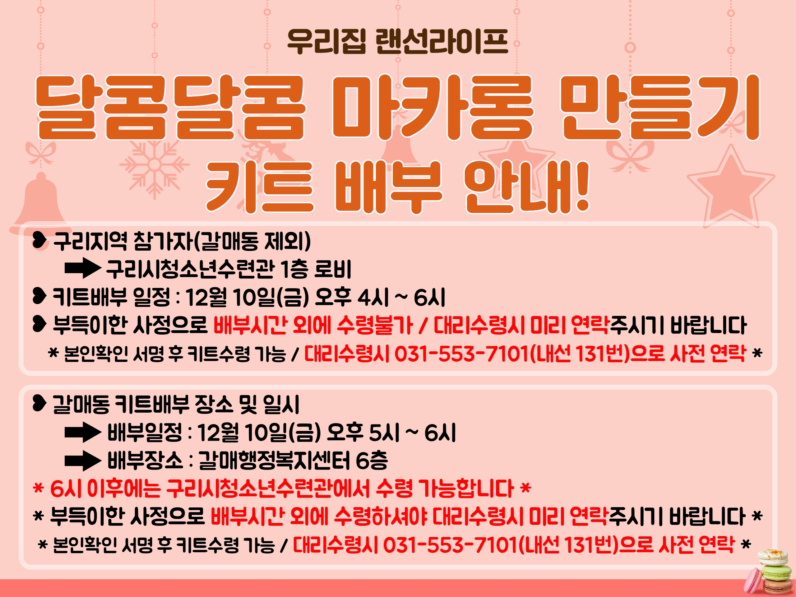 청소년수련관 < 우리집 랜선라이프 - 달콤달콤 마카롱 만들기 > 키트 배부 안내 !