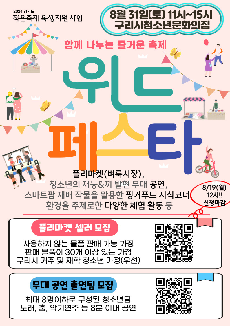 청소년문화의집 위드페스타 (플리마켓 셀러 가정, 청소년 공연팀 모집 및 체험활동 사전신청)