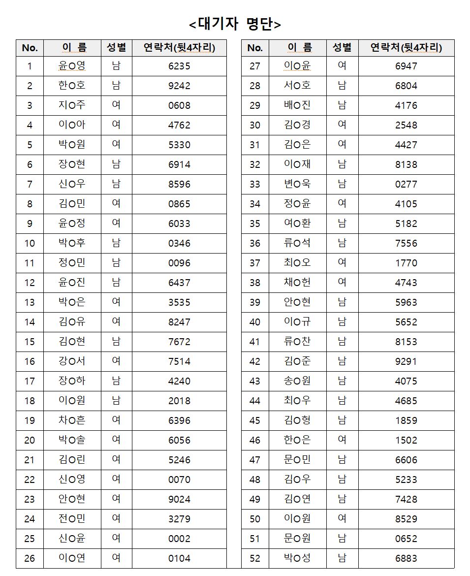 대기자는 참가포기 발생 시 순번대로 개별연락 드리도록 하겠습니다.