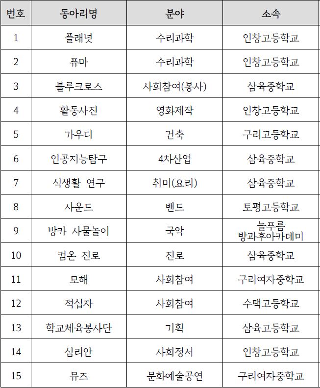 미선정된 동아리는 희망 동아리에 한해 하반기에 지원 예정입니다.