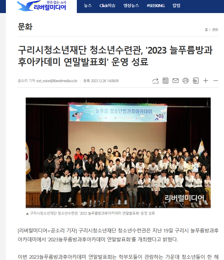 청소년수련관 구리시청소년재단 늘푸름방과후아카데미 연말발표회(졸업식) 운영성료(리버럴미디어 외 7곳)