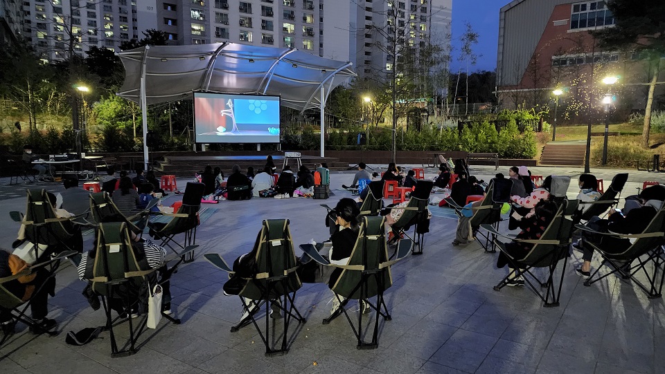 이날 행사에 참여한 청소년과 가족들은 공원 대형스크린 앞에 마련된 캠핑의자, 매트 등에 앉아 영화 ‘소울’을 관람했다.