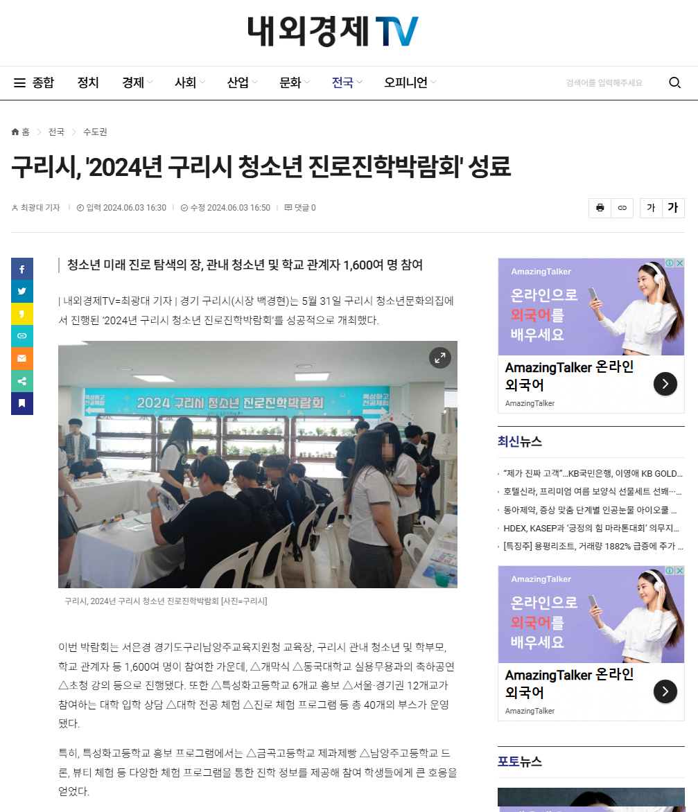 청소년문화의집 구리시, '2024년 구리시 청소년 진로진학박람회' 성료 (내외경제TV외 12곳) 작성자 유병흔 등록일자 2024년 6월 11일 14시 55분 56초 조회 406 화면 캡처 2024-06-11 145154.png [ Size : 675.59KB , Down : 188 ] 미리보기 다운로드 화면 캡처 2024-06-11 145544.png [ Size : 221.82KB , Down : 184 ] 미리보기 다운로드 목록보기