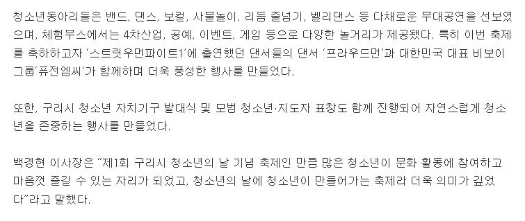 청소년수련관 '제1회 구리시 청소년의 날 기념 청소년동아리 축제' 성료(남양주신문 외 다수) 작성자 조성민 등록일자 2024년 6월 11일 14시 48분 31초 조회 314 9.JPG [ Size : 74.78KB , Down : 197 ] 미리보기 다운로드 99.JPG [ Size : 55.77KB , Down : 198 ] 미리보기 다운로드 999.JPG [ Size : 96.26KB , Down : 183 ] 미리보기 다운로드 목록보기