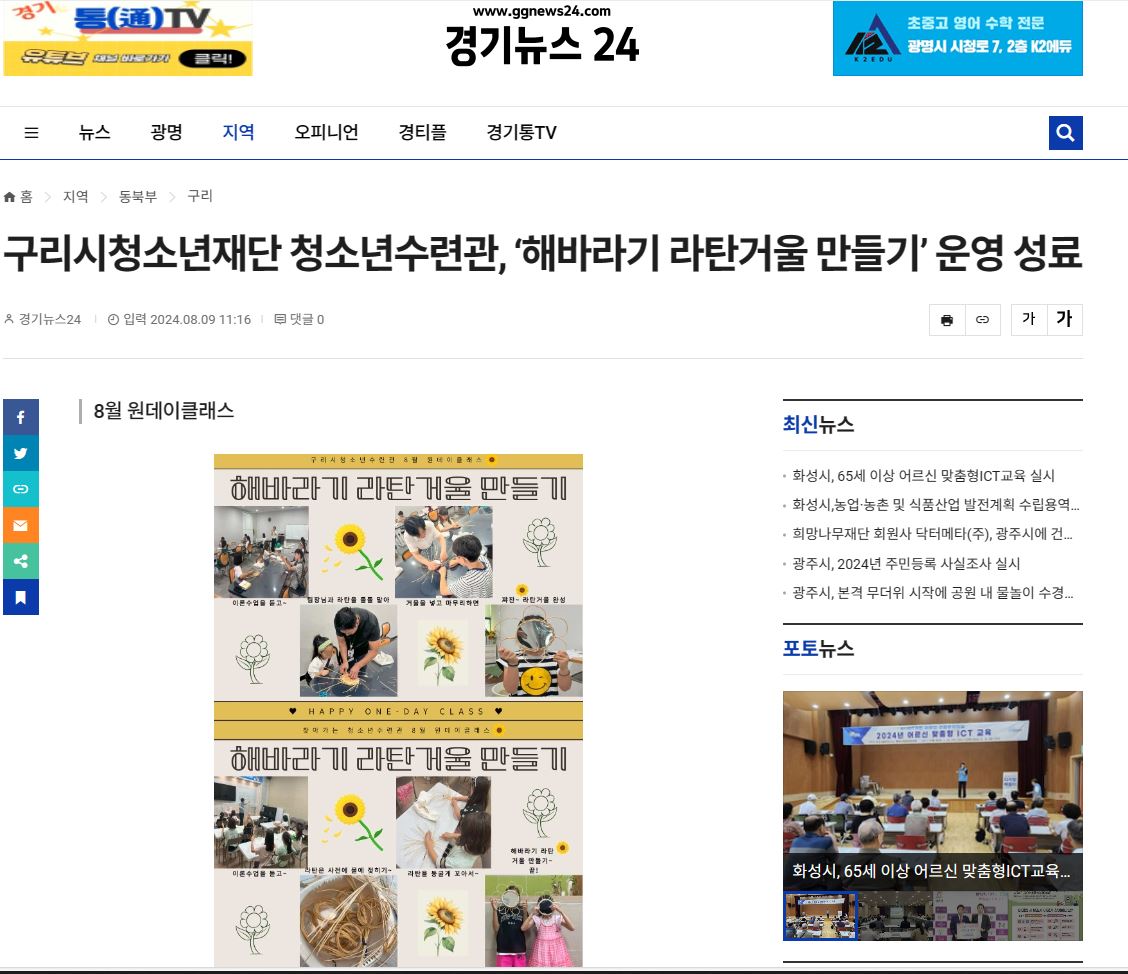 청소년수련관 구리시청소년수련관, 8월 원데이클래스 '해바라기 라탄거울 만들기' 운영 성료(경기뉴스 외 8곳)