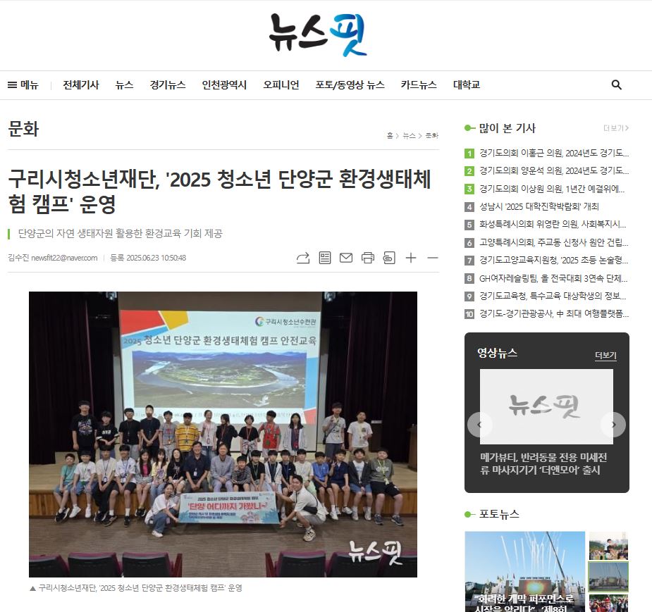 청소년수련관 구리시청소년재단 청소년수련관, '2025 청소년 단양군 환경생태체험 캠프' 운영(뉴스핏 외 10곳)