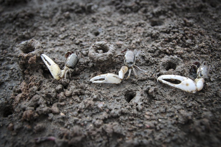 무안황토 갯벌체험학습장에는 다양한 생물들이 살고 있으며 집게발 하나가 크고 하얀 ‘흰발농게’가 멸종위기종이자 해양보호생물로 지정된 대표 생물이다.