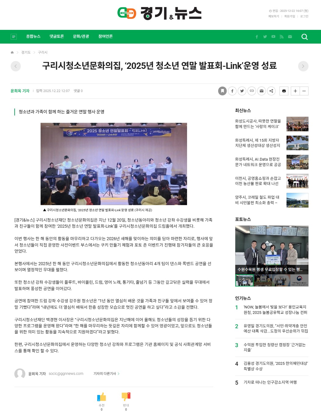 청소년문화의집 구리시청소년문화의집, 2025년 청소년 연말발표회 운영 성료 작성자 유병흔 등록일자 2025년 12월 22일 16시 12분 32초 조회 97 화면 캡처 2025-12-22 161207.jpg [ Size : 274.05KB , Down : 25 ] 미리보기 다운로드 목록보기