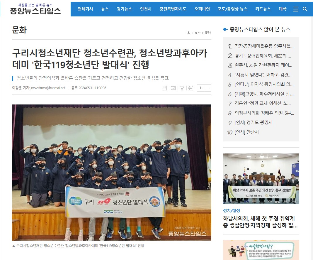 청소년수련관 구리시청소년재단 늘푸름방과후아카데미 '한국119청소년단 발대식'(중앙뉴스타임스 외 7건)