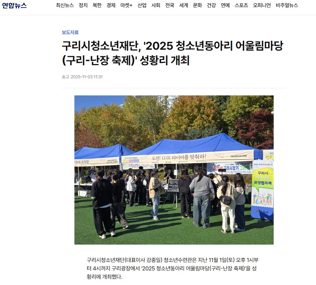 청소년수련관 구리시청소년재단 청소년수련관, 2025 청소년동아리 어울림마당 '구리-난장 축제' 운영 성료(연합뉴스 외 12곳)