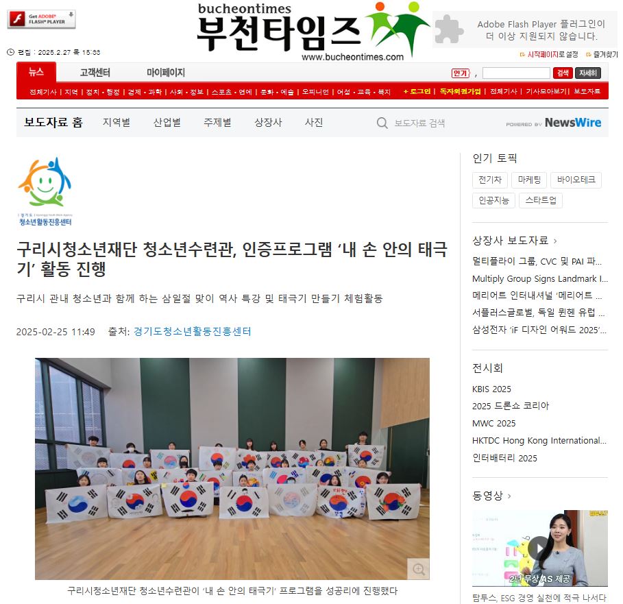 청소년수련관 구리시청소년재단 청소년수련관, 인증프로그램 ‘내 손 안의 태극기’ 활동 진행(부천타임즈 외 85곳)