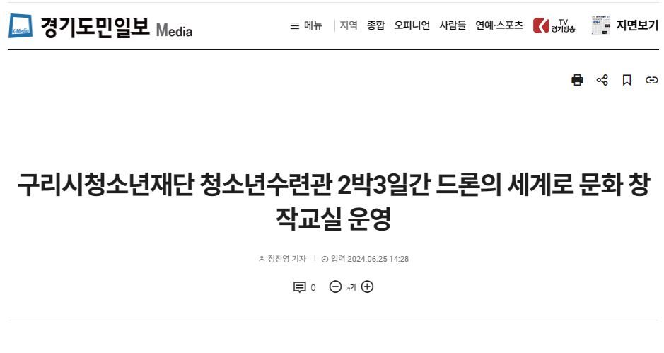 청소년수련관 구리시청소년수련관, 6월 문화창작교실(자체) '드론나~ 드론의 세계로!' 운영(경기도민일보 외 5곳)